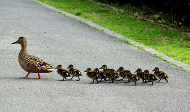 Leerlingen bedenken, maken en testen oplossingen om de eendjes veilig naar de overkant te helpen.